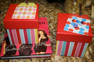I have tons of reading with all this gift exchanging. So I will definetly keep you posted.The boxes are from target cute and cheap! Next year I need to find something bigger, our gifts tend to not fit it the boxes haha!